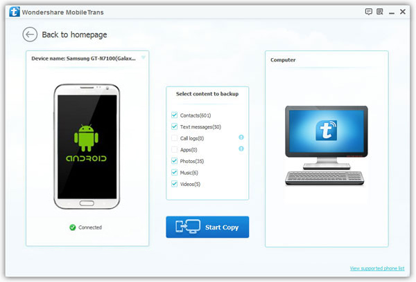 Step 2 Launch the Mobile Transfer and backup your Samsung data to PC